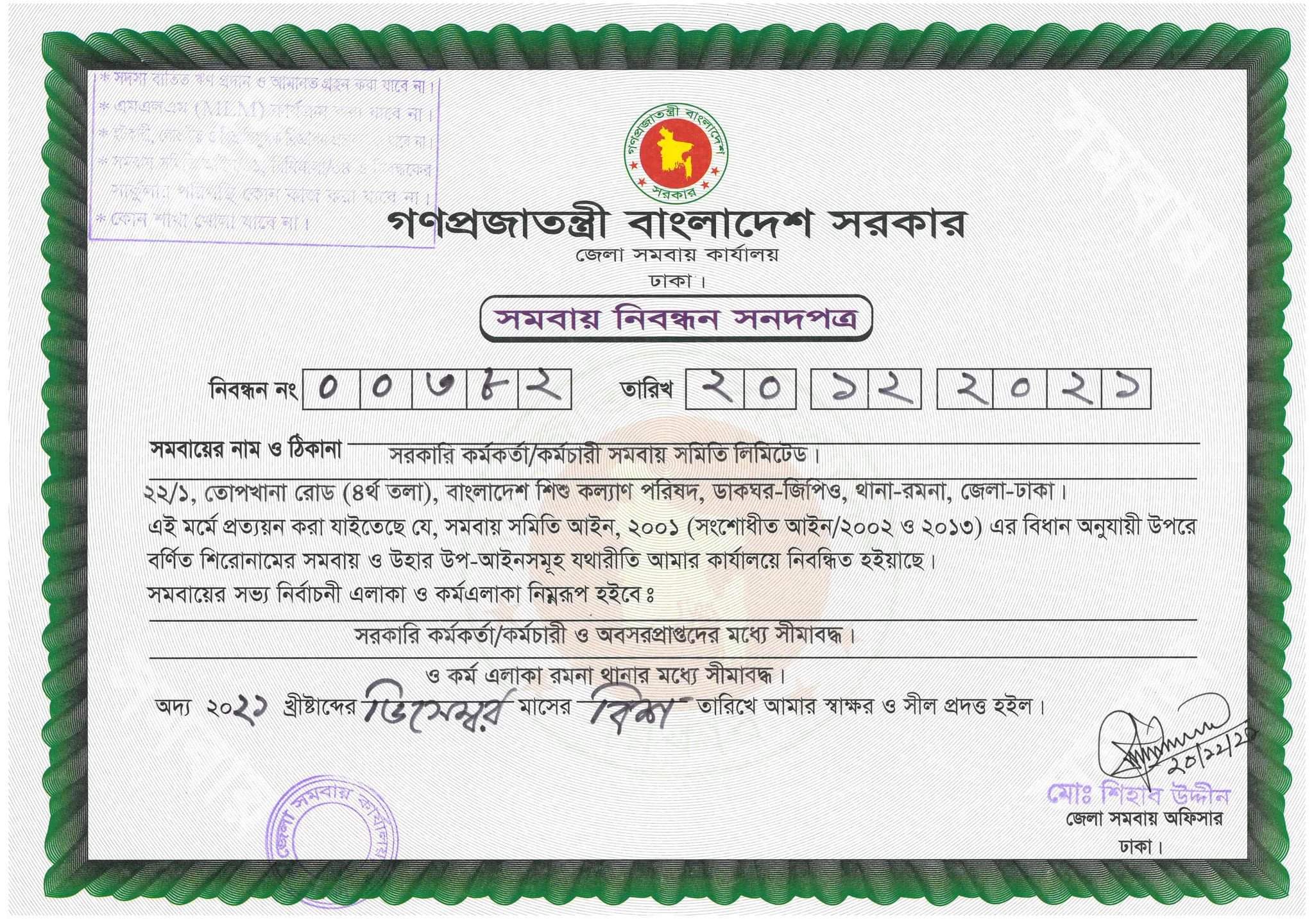 ২৫-১২-২০২১ Certificate for Registration